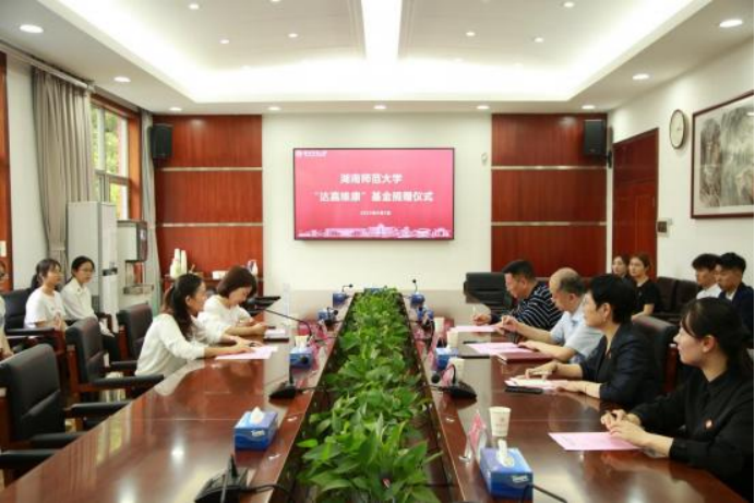捐赠项目,已持续数年。 湖南达嘉维康医药集团、湖南师范大学教育基金会、化 学化工学院相关负责人以及部分学生代表参加签约仪式。