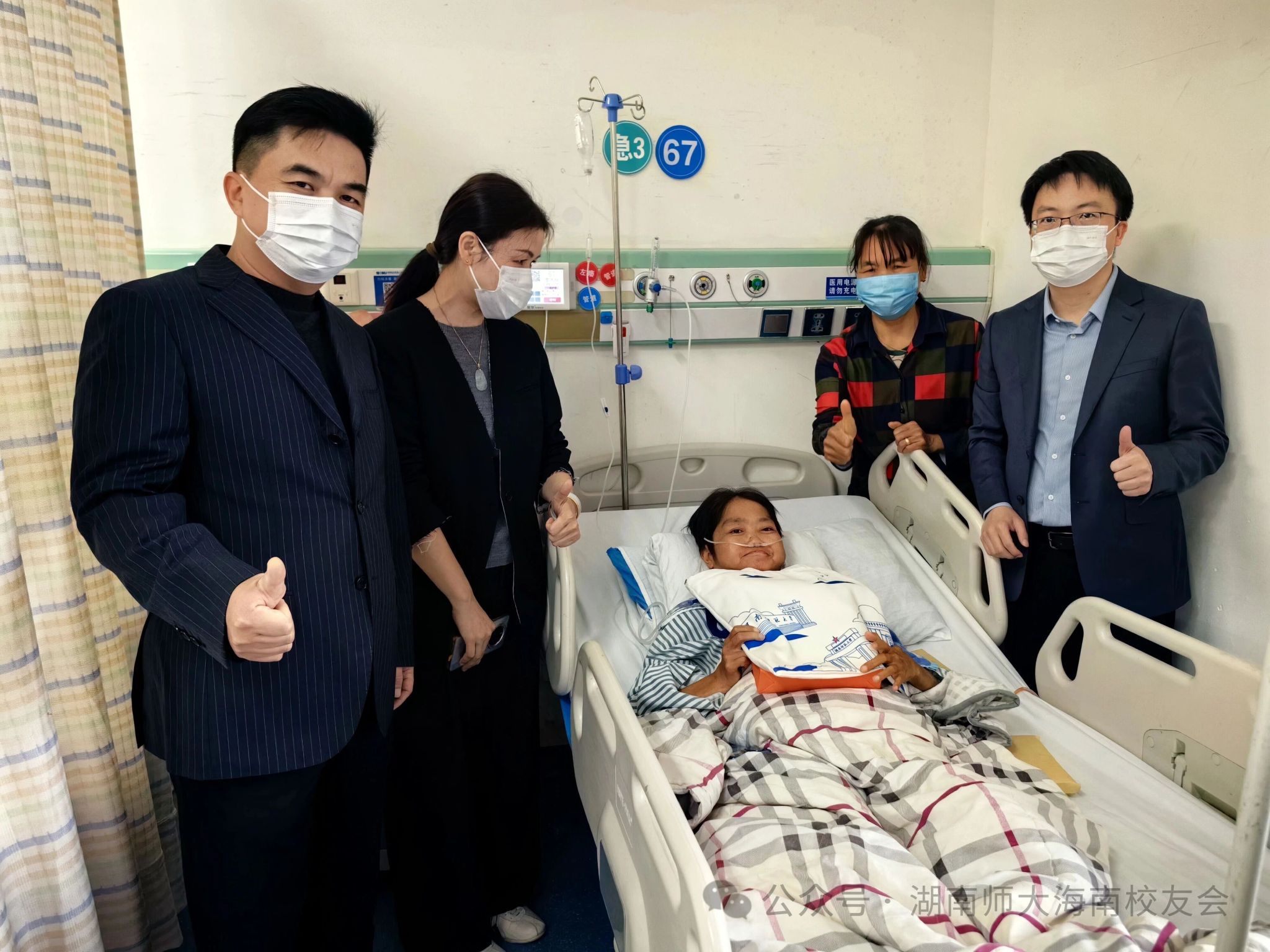 经过医院连续多日积极治疗,廖冬梅校友病情好转转入普通病房。12月26日上午,曾标志会长一行专程前往医院慰问,详细询问了廖冬梅校友的病情与治疗进展,转达了母校及校友们对她的关心与支持。